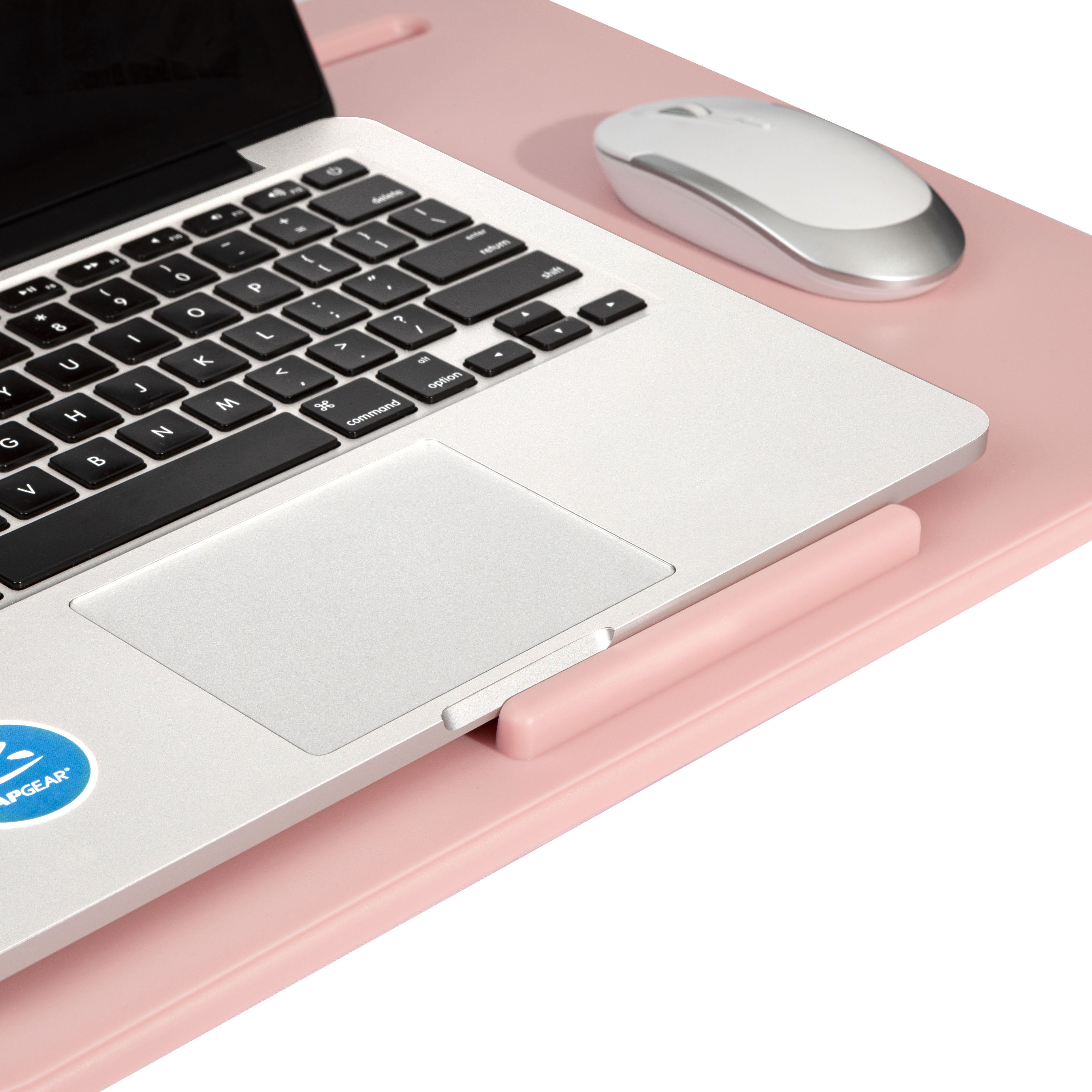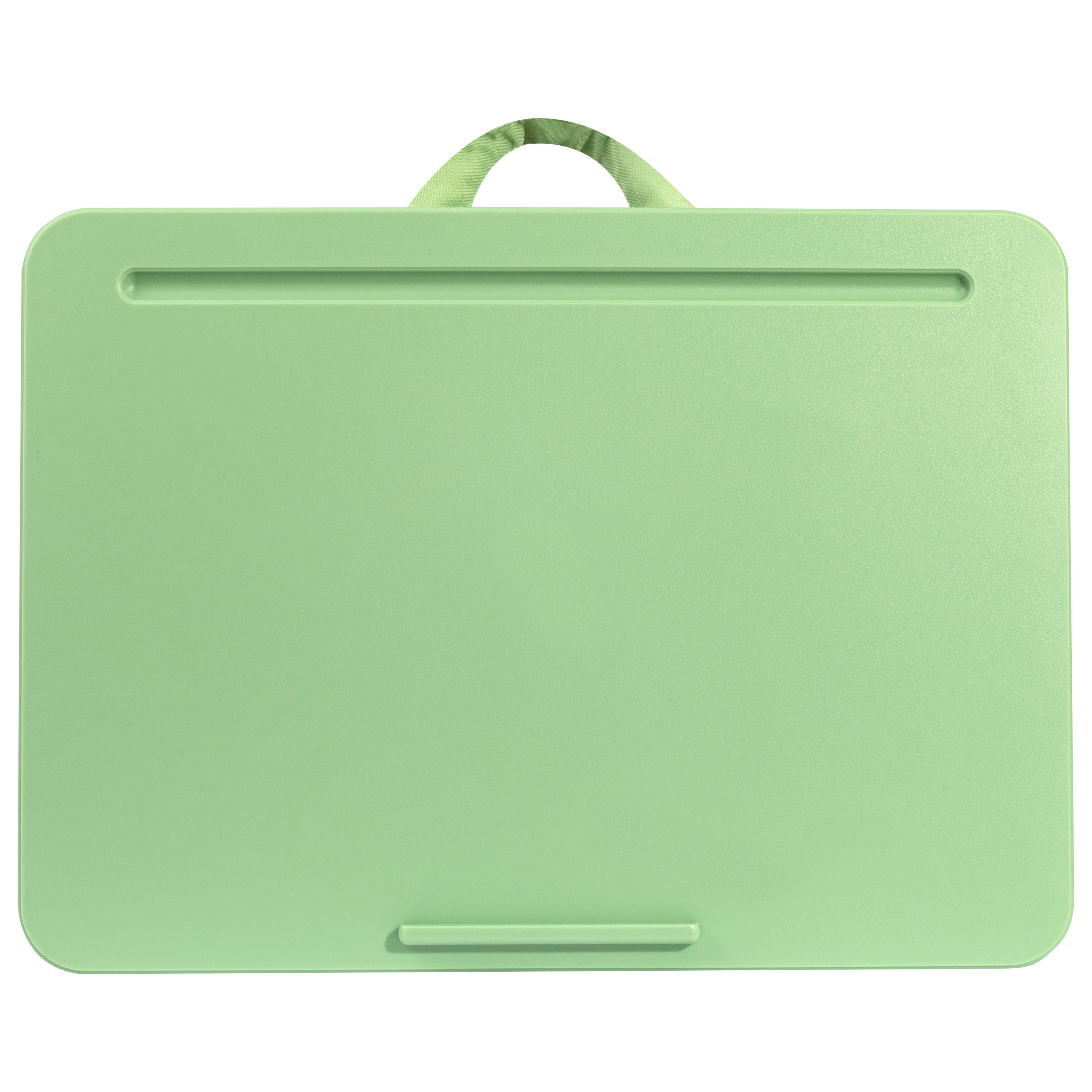 Upgrade your workspace with the Original Lap Desk, designed for comfort, style, and convenience. Its spacious surface fits laptops up to 17.3 inches, making it perfect for work, study, or creativity. A plush dual bolster cushion rests comfortably on your lap, providing stability and airflow for all-day use. With its sleek, tone-on-tone design in vibrant shades, this lap desk adds a modern touch to any setting.