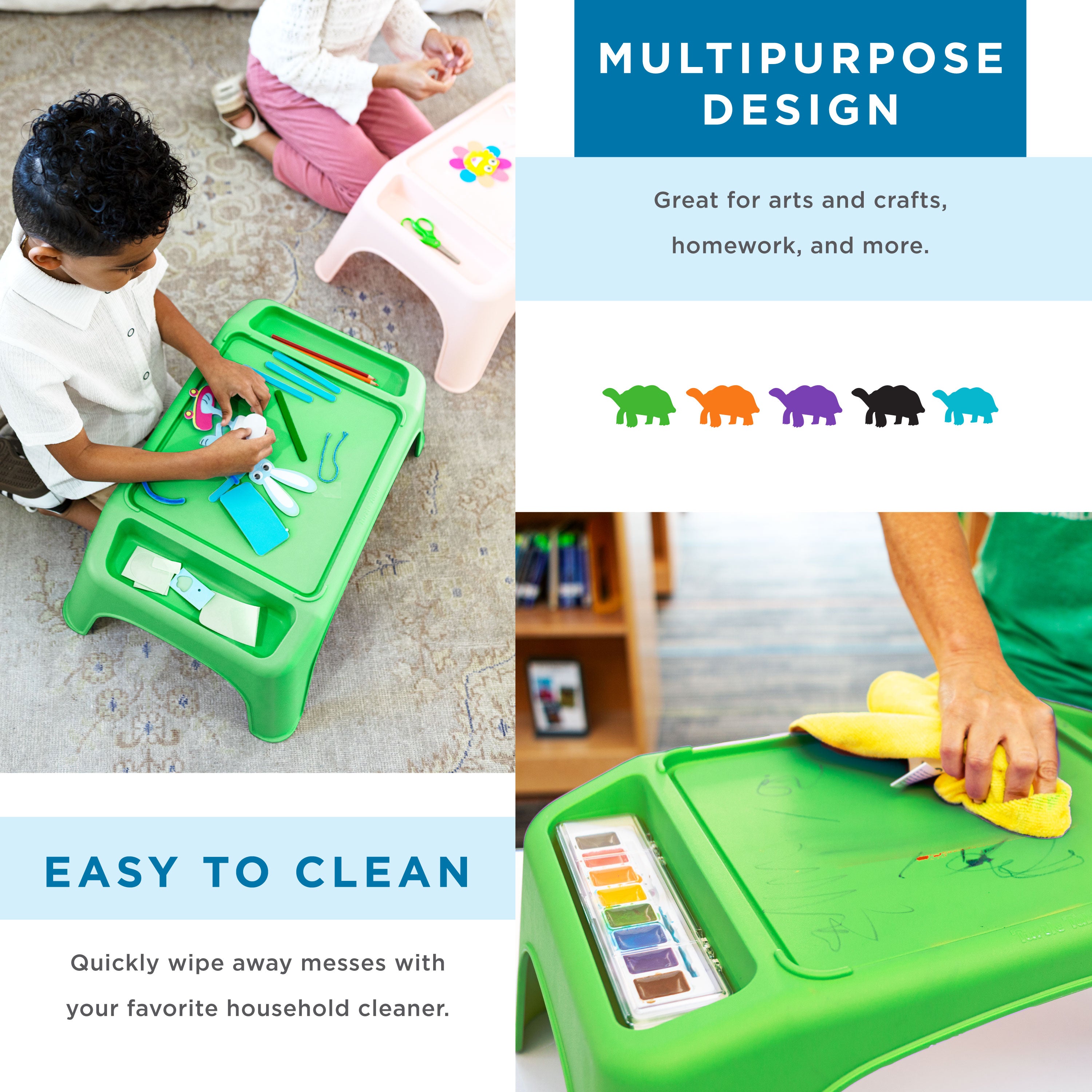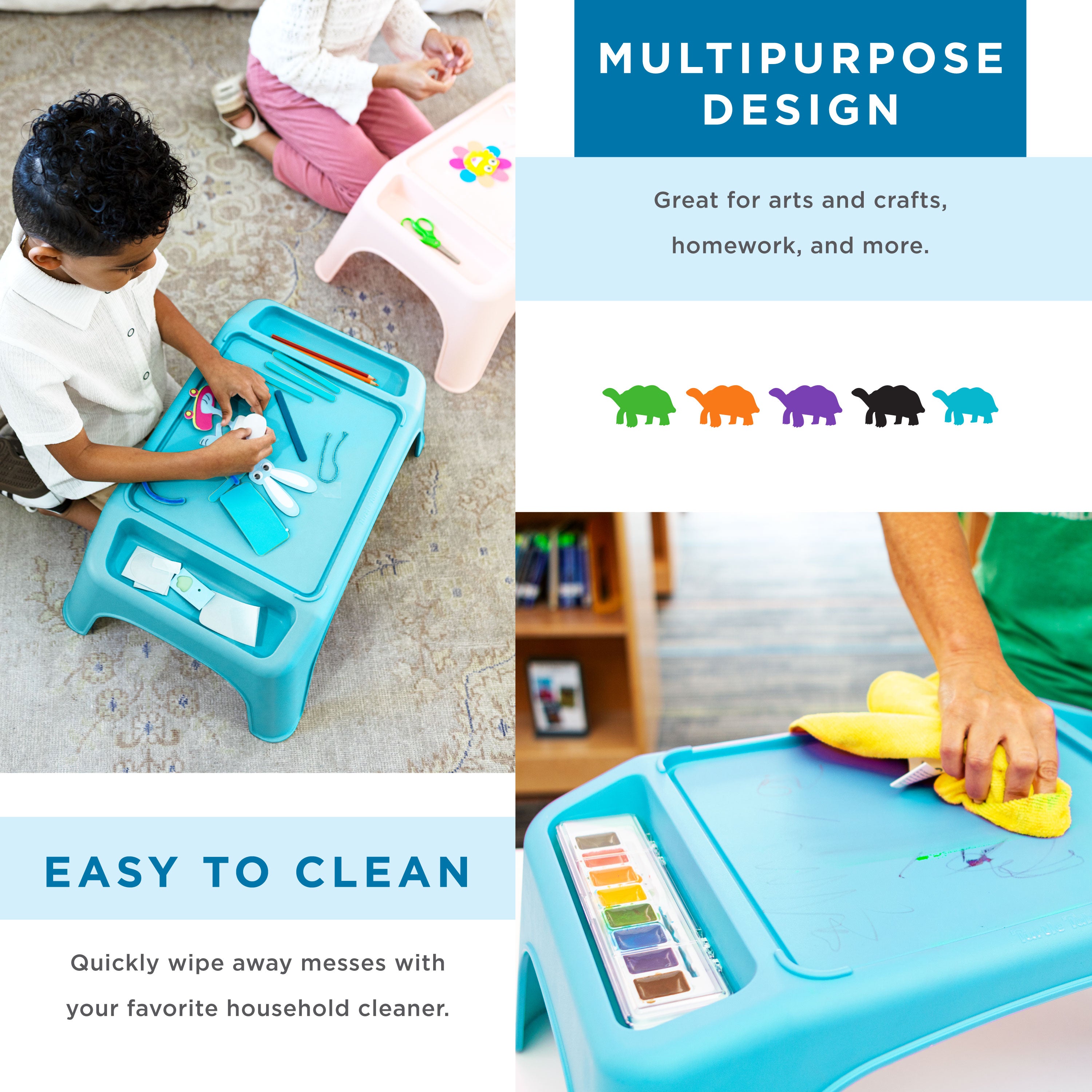 Introduce your classroom to the Turtle Table® Activity Desk! This colorful, sturdy lap desk is perfect for art, science, and learning. Supporting up to 150 lbs., it’s ready for all kinds of activity. Plus, it’s stackable for easy storage. Available in bright colors, the Turtle Table® Activity Desk adds joy to any learning space, bringing innovation, interaction, and inspiration into your classroom!